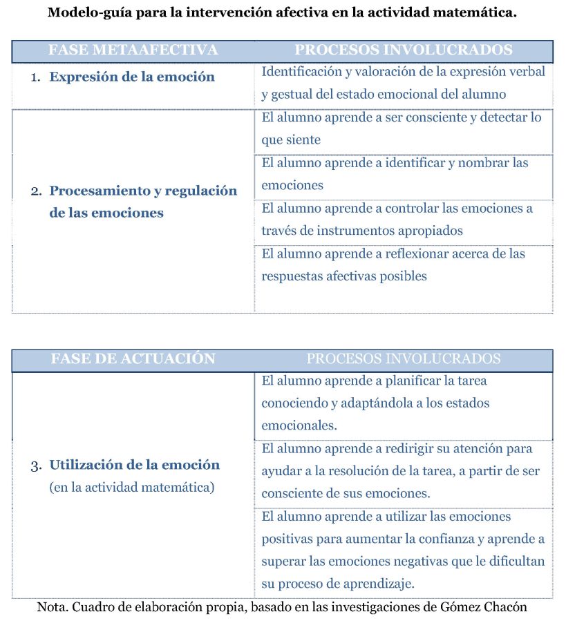 La creciente demanda para considerar los afectos en el proceso de aprendizaje, de modo que el alumno identifique y sea consciente de sus emociones para poder regular y mejorar sus estrategias de aprendizaje, hace que hoy sea especialmente pertinente incluir la dimensión emocional y afectiva en el proceso de enseñanza-aprendizaje de una asignatura con tan «mala prensa» y que produce tantos «quebraderos de cabeza» a niños, padres y educadores, como es: Matemáticas.